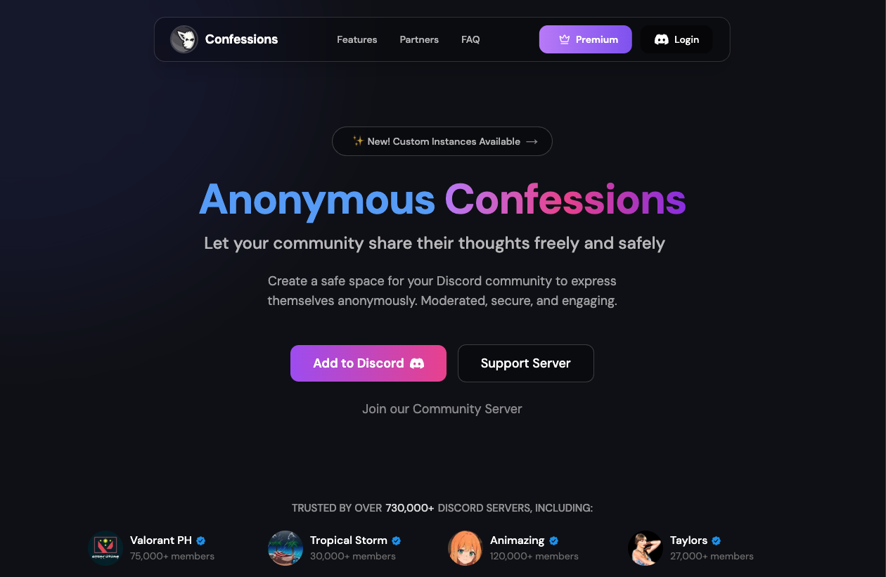 When the pandemic moved campus life online, communities migrated to Discord. However, Discord lacks native anonymity. The Confessions Bot automated the old manual process: users DM the bot, and the bot posts for them instantly. It became the “Digital Bathroom Stall” of the modern internet.