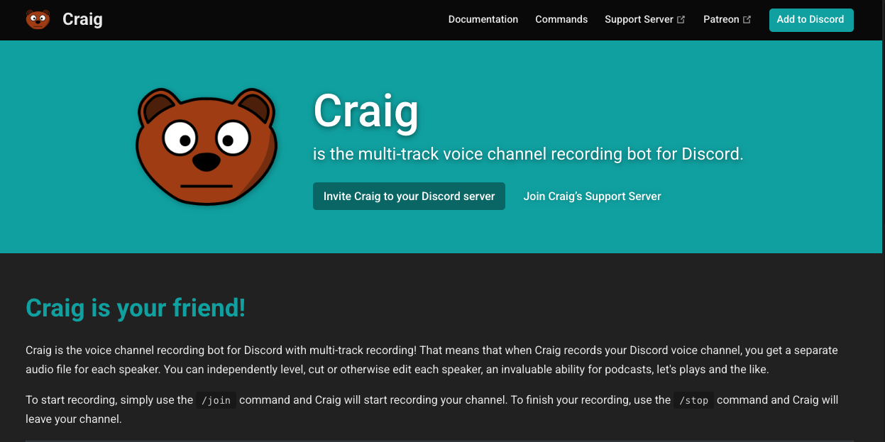Craig is the #1 voice recording bot for Discord, designed specifically for podcasters, creators, and professionals.