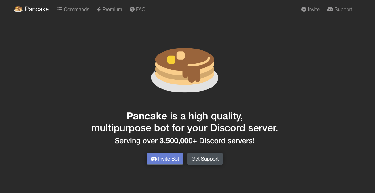 Pancake is built on three pillars: Music, Moderation, and Fun.
