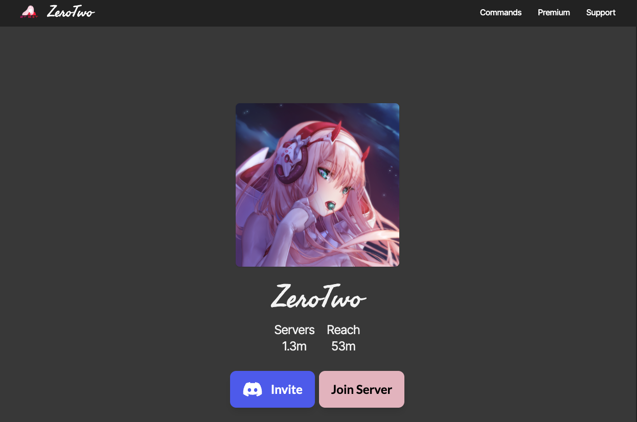 ZeroTwo is a multi-purpose Discord bot themed after the iconic character Zero Two from the anime Darling in the Franxx.